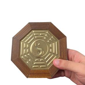 Quadro Yin Yang Madeira Imbuia Oitavado e Metal 12,5x12,5cm