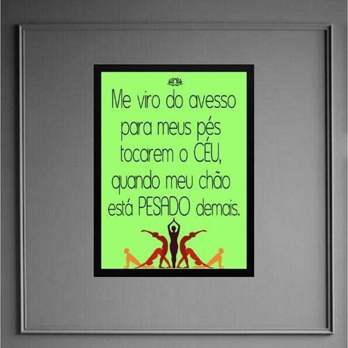 Quadro yoga frase - tocar o céu 45x34cm - com vidro Moldura: madeira preta Informações do produto tire todas as suas dúvidas no descritivo abaixo: decoração para quarto, sala, cozinha, escritório, área gourmet e muito mais. Chega de paredes vazias medidas - cada peça tem 45x34cm a3 . Material do papel - papel fotográfico brilhante de altíssima resolução acabamento - todos os quadros são acompanhados de vidro para proteção da imagem. - moldura em madeira maciça na cor preta ou branca conforme produto escolhido e pendurador . - os quadros são embalados de forma segura com plástico bolha com camada dupla de acordo com o tamanho dos quadros. Garantia - garantia de 3 meses. Meu quadro chegou. Como posso fixá-lo Você precisa apenas de um martelo e um prego, pois os quadros já vão acompanhados de penduradores. Esta é a forma mais indicada. Como posso limpar meu quadro A limpeza é feita como um móvel comum da sua casa. Apenas um pano seco ou espanador são suficientes para tal