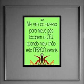 Quadro yoga frase - tocar o céu 45x34cm Moldura: madeira preta Informações do produto tire todas as suas dúvidas no descritivo abaixo: decoração para quarto, sala, cozinha, escritório, área gourmet e muito mais. Chega de paredes vazias. Medidas - cada peça tem 45x34cm a3 . Material do papel - papel fotográfico brilhante de altíssima resolução acabamento - todos os quadros são acompanhados de uma película de acetato para proteção da imagem. - os quadros são embalados de forma segura com plástico bolha com camada dupla de acordo com o tamanho dos quadros. - de 3 meses. Meu quadro chegou. Como posso fixá-lo Você precisa apenas de um martelo e um prego, pois os quadros já vão acompanhados de penduradores. Esta é a forma mais indicada. Caso prefira, você pode utilizar uma fita dupla face neste caso, sugerimos de alta qualidade para evitar que descole e seu quadro caia . Como posso limpar meu quadro A limpeza é feita como um móvel comum da sua casa. Apenas um pano seco ou espanador são suficientes para tal Marca: Não Informado