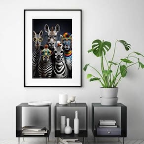 Quadro zebras modernas de óculos - 60x48cm Moldura: madeira preta Informações do produto tire todas as suas dúvidas no descritivo abaixo: decoração para quarto, sala, cozinha, escritório, área gourmet e muito mais. Chega de paredes vazias medidas - cada peça tem 60x48cm . Material do papel - papel fotográfico brilhante de altíssima resolução acabamento - todos os quadros são acompanhados de vidro para proteção da imagem. - moldura em madeira maciça na cor preta ou branca conforme produto escolhido e pendurador. - paspatur branco com 7cm de largura - os quadros são embalados de forma segura com plástico bolha com camada dupla de acordo com o tamanho dos quadros. - de 3 meses. Meu quadro chegou. Como posso fixá-lo Você precisa apenas de um martelo e um prego, pois os quadros já vão acompanhados de penduradores. Esta é a forma mais indicada. Como posso limpar meu quadro A limpeza é feita como um móvel comum da sua casa. Apenas um pano seco ou espanador são suficientes para tal