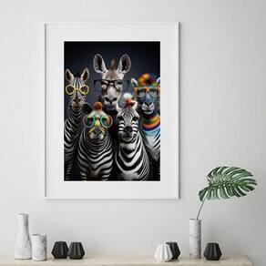 Quadro Zebras Modernas De Óculos - 60X48Cm