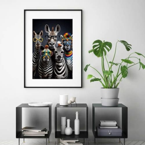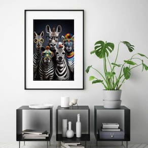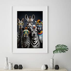 Quadro Zebras Modernas De Óculos - 60x48cm - Moldura: Madeira preta