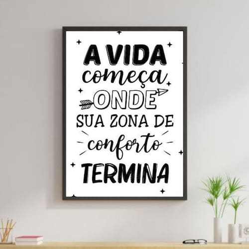 Quadro zona de conforto termina 45x34cm - com vidro Moldura: madeira preta Informações do produto tire todas as suas dúvidas no descritivo abaixo: decoração para quarto, sala, cozinha, escritório, área gourmet e muito mais. Chega de paredes vazias medidas - cada peça tem 45x34cm a3 . Material do papel - papel fotográfico brilhante de altíssima resolução acabamento - todos os quadros são acompanhados de vidro para proteção da imagem. - moldura em madeira maciça na cor preta e pendurador . - os quadros são embalados de forma segura com plástico bolha com camada dupla de acordo com o tamanho dos quadros. - de 3 meses. Meu quadro chegou. Como posso fixá-lo Você precisa apenas de um martelo e um prego, pois os quadros já vão acompanhados de penduradores. Esta é a forma mais indicada. Como posso limpar meu quadro A limpeza é feita como um móvel comum da sua casa. Apenas um pano seco ou espanador são suficientes para tal Ean: 7895142179447