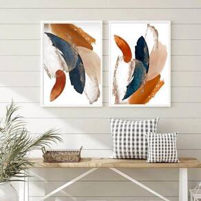 Renove sua decoração com o Conjunto 2 Quadros Abstratos Arte Azul Terracota. Adquira já e deixe seus espaços ainda mais bonitos e aconchegantes.