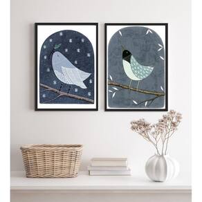 Conjunto 2 Quadros Arte Passarinhos Azuis 45X34Cm