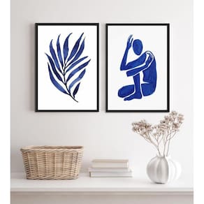 Compre agora mesmo o Conjunto 2 Quadros Azul Marinho Abstrato Folha Homem 24X18Cm e transforme a decoração da sua casa.