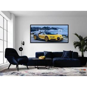 Quadros Carros Bugatti Amarelo 130x60 Moldura Preta 2x2