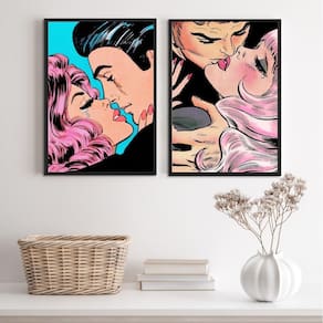 Kit 2 Quadros Casais Beijo Pop Art 33X24Cm - Com Vidro O Kit 2 Quadros Casais Beijo Pop Art é perfeito para decorar diversos ambientes, como quarto, sala, cozinha, escritório, área gourmet e muito mais. Chega de paredes vazias! Cada peça possui 33x24cm tamanho A4 e é feita em papel fotográfico brilhante de altíssima resolução. Os quadros vêm acompanhados de vidro para proteção da imagem e moldura em madeira maciça na cor preta. Além disso, cada quadro possui um pendurador, facilitando a sua fixação na parede. A embalagem é feita com plástico bolha de camada dupla, garantindo a segurança dos quadros durante o transporte. Compre com confiança, pois oferecemos de 3 meses para os quadros. 1. Como posso fixar meu quadro? Para fixar o quadro, você precisa apenas de um martelo e um prego, pois os quadros já vão acompanhados de penduradores. 2. Como posso limpar meu quadro? A limpeza do quadro é muito simples. Basta utilizar um pano seco ou um espanador para remover a poeira. Marca: Não Informado
