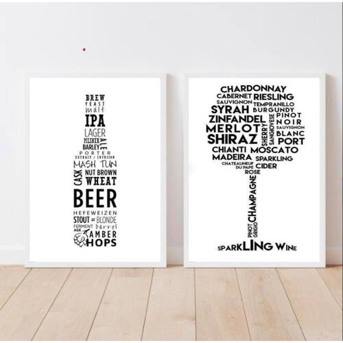Quadros Cerveja e Vinho 33x24cm - Vidro e Moldura Branca