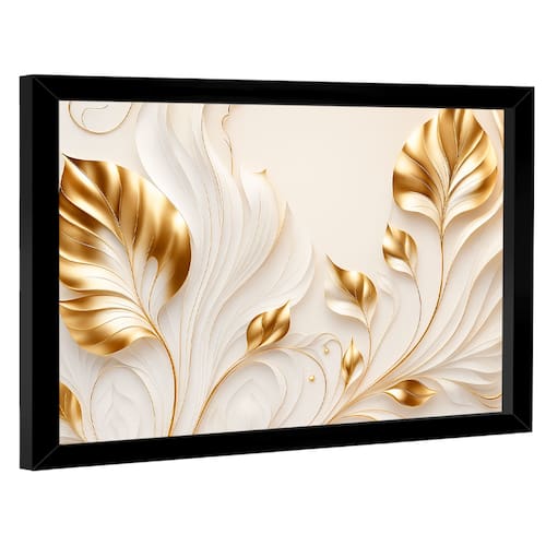 Quadros Decorativo Flores Douradas no Branco Moldura Preta - 60x40cm -