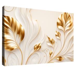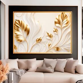 Quadros Decorativo Flores Douradas no Branco Borda Infinita - 60x40cm -