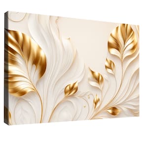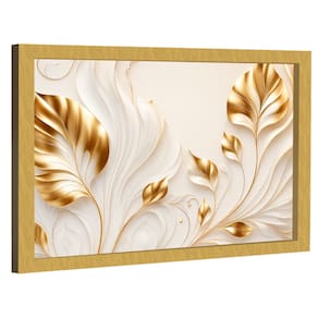 Quadros Decorativo Flores Douradas no Branco Moldura Preta - 84x54cm -