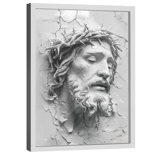 Quadros Decorativo Jesus Face 3D Moldura Branca e Vidro - 150x100cm -