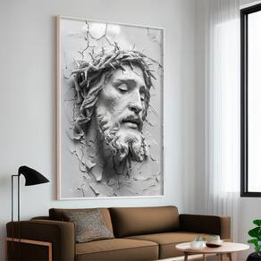 Quadros Decorativo Jesus Face 3D Moldura Branca e Vidro - 118x78cm -