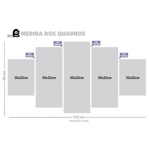 Kit 5 quadros decorativos mosaicos Material: Quadros produzido em mdf - dimensões: Tamanho total do quadro montado na parede: 115cm x 60cm - 1 peça central com 60x22cm - 2 peças intermediárias: 22x50cm - 2 peças laterais: 22x30cm. - deixar espaçamento entre as peças na hora da instalação = 1 cm -informações técnicas: O quadro não precisa de moldura, estão pronto para pendurar na parede. São feitos em adesivos fosco e impressos em alta qualidade. Aplicado em mdf com espessura de 3mm. - instalação: Não é necessário furar a parede para instalação, pois, enviamos fitas 3m com grande poder adesivo para facilitar a instalação. É necessário na hora da instalação posicionar o quadro em 1cm de largura entre eles para melhor qualidade de visualização. Limpe o local que vai ser instalado o quadro com um pano úmido, após secar o local, visualize como Vai ser o alinhamento, e retire a proteção da fita dupla face parte verde da fita e pressione No lugar desejado para a fixação. - limpeza após instalação: A limpeza pode ser realizada apenas com um pano seco macio, se desejar pode ser úmido porém sem conter álcool ou produtos químicos. -demais dúvidas estamos à disposição, basta nos chamar no campo mensagens que estamos aqui para melhor atendê-los : Boas compras