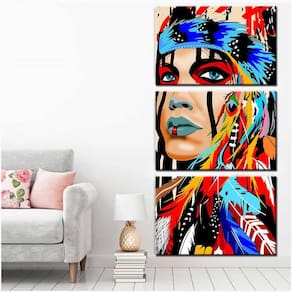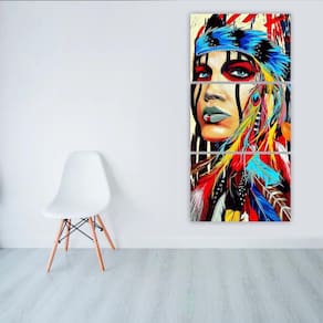 Quadros Decorativo Sala Quarto Índia Americana Colorida 80X60 Kit 3 quadros decorativos mosaicosMaterial:Quadros decorativos produzido em mdf- medidas por peça:1 peça de 80x60cm1 peça de 80x60cm1 peça de 80x60cm Medida total do quadro instalado 180x80cm - informações técnicas: O quadro não precisa de moldura, estão pronto para pendurar na parede. São feitos em adesivos fosco e impressos em alta qualidade. Aplicado em mdf com espessura de 3mm. Não é necessário furar a parede para instalação, pois, enviamos fitas 3m com grande poder adesivo para facilitar a instalação. É necessário na hora da instalação posicionar o quadro em 1cm de largura entre eles para melhor qualidade de visualização.- instalação:Limpe o local que vai ser instalado o quadro com um pano úmido, após secar o local, visualize comoVai ser o alinhamento, e retire a proteção da fita dupla face parte verde da fita e pressioneNo lugar desejado para a fixação.- limpeza após fixação:A limpeza pode ser realizada apenas com um pano seco macio, se desejar pode ser úmidoPorém sem conter álcool ou produtos químicos.