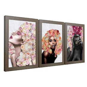 Kit 3 Quadros Decorativos 20x30 Mulheres Rosto Flores Rosas