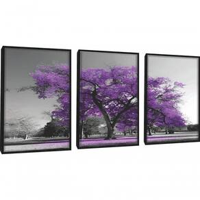 Quadros Decorativos árvore Lilás Com Moldura Preto