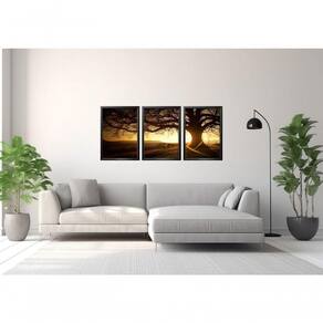 Quadros Decorativos árvore Por Sol Paisagem Com Moldura Preto