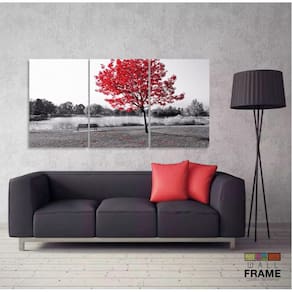Quadros Decorativos Arvore Vermelho Botanico Sala 120x60 3 p