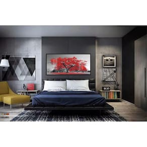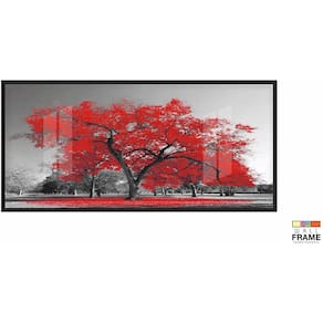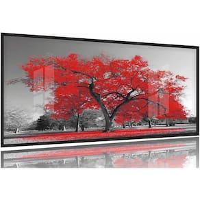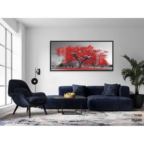 Quadros Decorativos Arvore Vida Vermelho Sala 130x60 Moldura Preta 2x2