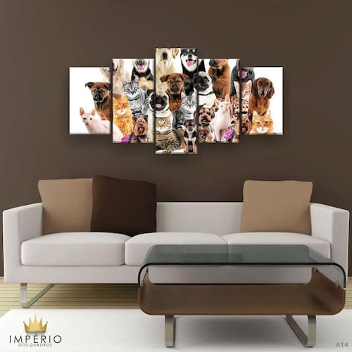 Quadros Decorativos Cães E Gatos Pets Hd Quarto Sala Kit