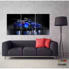 Quadros Decorativos Carro Skyline Azul 120x60 3 peças em Tec