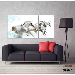 Quadros Decorativos Cavalos Brancos 120x60 3 peças em Tecido
