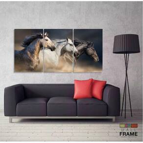 Quadros Decorativos Cavalos Country Sala 120x60 3 peças