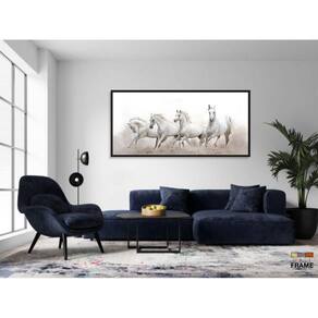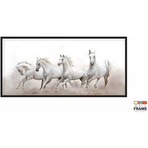 Quadros Decorativos Cavalos Fazenda Sala 130x60 Moldura Preta 2x2