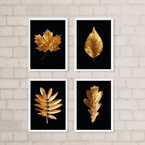 Garanta já o seu Kit 4 Quadros Decorativos Folhas Douradas 33x24cm e transforme a decoração da sua casa com muito estilo e bom gosto. Marca: Não Informado