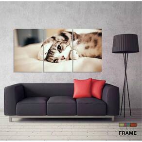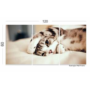 Quadros Decorativos Gato Fofo 3 peças 120x60 cm em Tecido