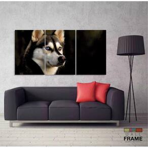 Quadros Decorativos Husky Siberiano120x60 3 peças em Tecido