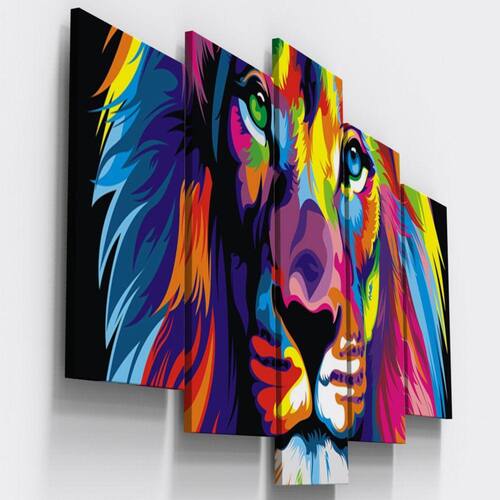 Quadros Decorativos Leão Colorido Abstrato Sala
