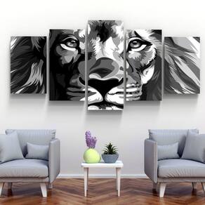 Quadros Decorativos Leão Preto Branco Sala Escritório