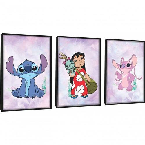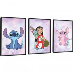 Quadros Decorativos Lilo & Stitch E Angel Com Moldura Preto