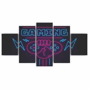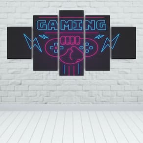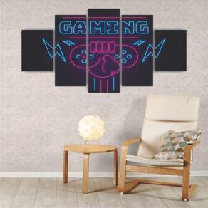 Quadros Decorativos Mdf Gaming Hora Jogo Gamer Sala Quarto Kit 5 quadros decorativos mosaicos Material: Quadros produzido em mdf - dimensões: Tamanho total do quadro montado na parede: 115cm x 60cm - 1 peça central com 60x22cm - 2 peças intermediárias: 22x50cm - 2 peças laterais: 22x30cm. - deixar espaçamento entre as peças na hora da instalação = 1 cm -informações técnicas: O quadro não precisa de moldura, estão pronto para pendurar na parede. São feitos em adesivos fosco e impressos em alta qualidade. Aplicado em mdf com espessura de 3mm. - instalação: Não é necessário furar a parede para instalação, pois, enviamos fitas 3m com grande poder adesivo para facilitar a instalação. É necessário na hora da instalação posicionar o quadro em 1cm de largura entre eles para melhor qualidade de visualização. Limpe o local que vai ser instalado o quadro com um pano úmido, após secar o local, visualize como Vai ser o alinhamento, e retire a proteção da fita dupla face parte verde da fita e pressione No lugar desejado para a fixação. - limpeza após instalação: A limpeza pode ser realizada apenas com um pano seco macio, se desejar pode ser úmido porém sem conter álcool ou produtos químicos. -demais dúvidas estamos à disposição, basta nos chamar no campo mensagens que estamos aqui para melhor atendê-los : Boas compras Marca: Não Informado