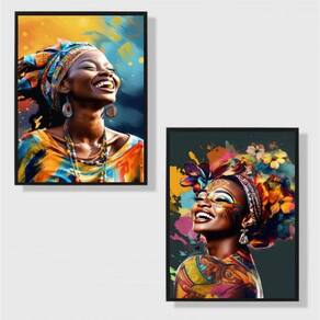 Kit 2 Quadros Decorativos Mulheres Afro 24X18Cm