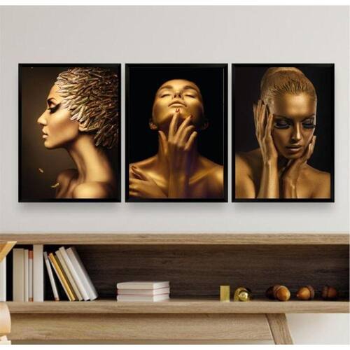 Com esse kit, você terá três quadros decorativos com ilustrações de mulheres douradas, que trarão um toque de sofisticação e charme para qualquer ambiente.