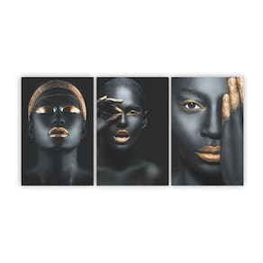 Quadros Decorativos Mulheres Negras Maquiagem Dourada 120X60