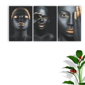 Quadros Decorativos Mulheres Negras Maquiagem Dourada 120X60