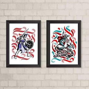 O Kit 2 Quadros Decorativos Ogum e São Jorge é perfeito para quem busca dar um toque especial à decoração de ambientes como quarto, sala, cozinha, escritório, área gourmet e muito mais. Com medidas de 24x18cm cada peça, esses quadros são ideais para preencher as paredes vazias e dar um toque de personalidade ao ambiente. A moldura dos quadros é feita em madeira preta, o que confere um acabamento elegante e sofisticado. Além disso, o papel utilizado é fotográfico brilhante de altíssima resolução, garantindo uma imagem nítida e de qualidade. Para proteger a imagem, cada quadro é acompanhado de uma película de acetato. Assim, você pode ter a certeza de que seus quadros estarão sempre protegidos e livres de danos. O Kit 2 Quadros Decorativos Ogum e São Jorge é embalado de forma segura, com plástico bolha de camada dupla, de acordo com o tamanho dos quadros. Dessa forma, você recebe seus quadros em perfeito estado, sem riscos de danos durante o transporte. Garantimos a qualidade do produto, oferecendo uma de 3 meses. Caso ocorra algum problema, basta entrar em contato conosco que teremos prazer em ajudar. A fixação dos quadros é muito simples. Eles já vêm acompanhados de penduradores, então você só precisa de um martelo e um prego para fixá-los na parede. Caso prefira, também é possível utilizar uma fita dupla face de alta qualidade. A limpeza dos quadros é muito fácil, basta utilizar um pano seco ou um espanador, como você faria com qualquer móvel da sua casa. Adquira agora mesmo o Kit 2 Quadros Decorativos Ogum e São Jorge e deixe sua decoração ainda mais especial e cheia de personalidade. Marca: Não Informado