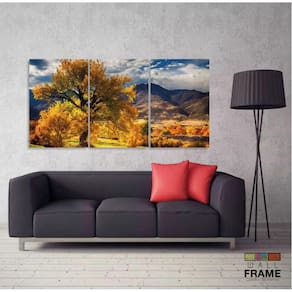 Quadros Decorativos Paisagem Árvore Amarela 3 Peças 120x60