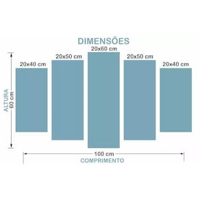 Cada peça contem 40x20 , 50X20 , 60X20 , 50X20 , 40X20 altura x largura .