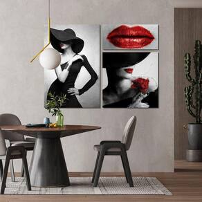 Quadros Decorativos Placas Mulheres Maquiagem Batom Vermelho