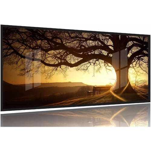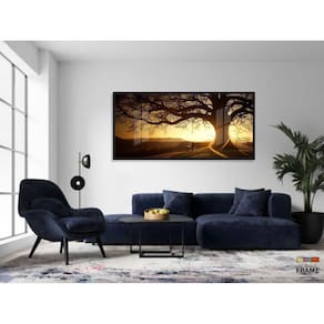 Quadros Decorativos Pôr do Sol Arvore Sala Quarto 130x60 Moldura Preta 2x2