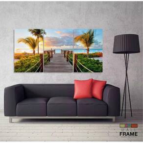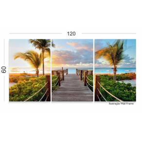 Quadros Decorativos Praia Por Do Sol 120x60 3 peças em Tecid