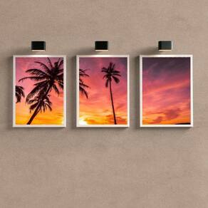 Especificações Técnicas: - Kit com 3 quadros decorativos - Título: Praia Por Do Sol - Medidas de cada quadro: 33x24cm A4 - Material do papel: Papel fotográfico brilhante de altíssima resolução - Acabamento: Vidro para proteção da imagem - Moldura: Madeira maciça na cor preta - Pendurador incluso para facilitar a instalação - Embalagem segura com plástico bolha de camada dupla - Garantia: 3 meses