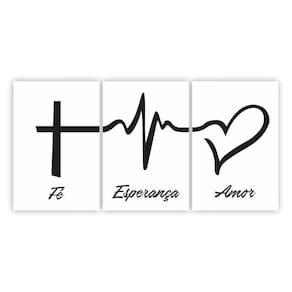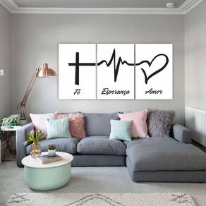 Quadros Decorativos Quarto Sala Amor Fé Esperança 120X60Cm