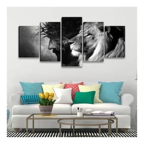 Especificações técnicas: Conjunto 05 Quadros. Tamanho total: 115cm comprimento X60cm altura Peças menores: 02 unidades - 22x35 cm Peças médias: 02 unidades - 22x50 cm Peça central: 01 unidade - 22x60 cm Espaçamento entre as peças: 2 cm Não acompanha Vidro. INSTALAÇÃO A instalação é bem simples, temos também os fixadores especiais com fita Dupla Face que acompanha o produto. Lembre-se de utilizar o espaçamento de 2cm entre as peças, para que as imagens dos quadros se casem perfeitamente e você tenha um produto maravilhoso. LIMPEZA / MANUTENÇÃO Para limpeza, utilize apenas um pano umedecido com água sem produtos químicos para garantir a durabilidade. IMPRESSÃO / ACABAMENTO Nossos quadros são impressos em vinil fosco, aplicado em MDF com espessura de 6mm. Desta forma terá um produto de alta durabilidade e também resistente a umidade. Não necessita de moldura, pois o acabamento das bordas/laterais é feito com a própria imagem impressa, dando visão realista e de profundidade do produto. Conjunto 05 Quadros. Tamanho total: 115cm comprimento X60cm altura Peças menores: 02 unidades - 22x35 cm Peças médias: 02 unidades - 22x50 cm Peça central: 01 unidade - 22x60 cm Espaçamento entre as peças: 2 cm Não acompanha Vidro. Marca: Não Informado Ean: 7891827351856